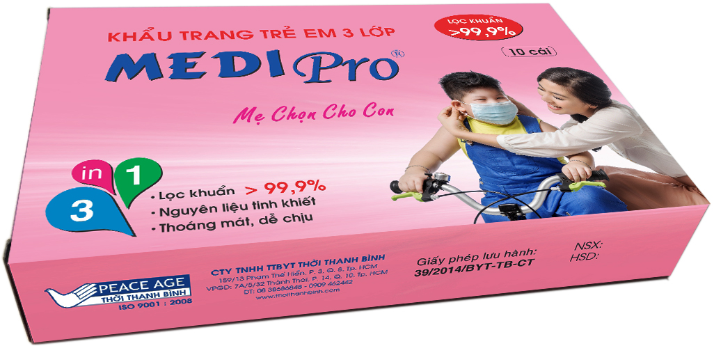 - Sản phẩm Khẩu trang y tế Cao cấp Medipro có lớp lọc cao cấp, hiệu suất lọc khuẩn BFE > 99,9% (Kết quả thử nghiệm của Phòng thí nghiệm Nelson - Hoa Kỳ).